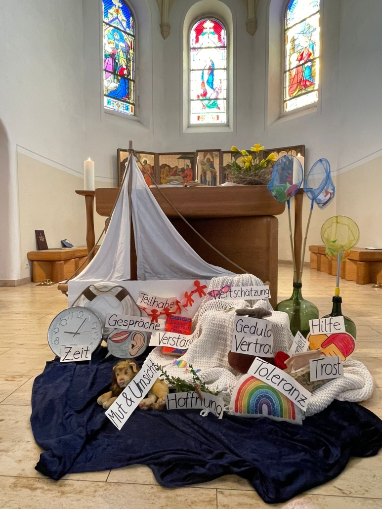 Familiengottesdienste bereichern seit über 30 Jahren das Leben in unserer Gemeinde. Zurzeit sind es sieben ehrenamtliche Mitarbeiterinnen, die in zwei Teams abwechselnd ca. einmal im Monat den Sonntagsgottesdienst für Familien und Gemeinde mit Texten, Liedern und Veranschaulichungen gestalten. Jede und jeder darf mitmachen und ihre / seine Fähigkeiten einbringen. So entsteht eine ansprechende Vielfalt. Musikalisch werden die Familiengottesdienste von einer Band begleitet.