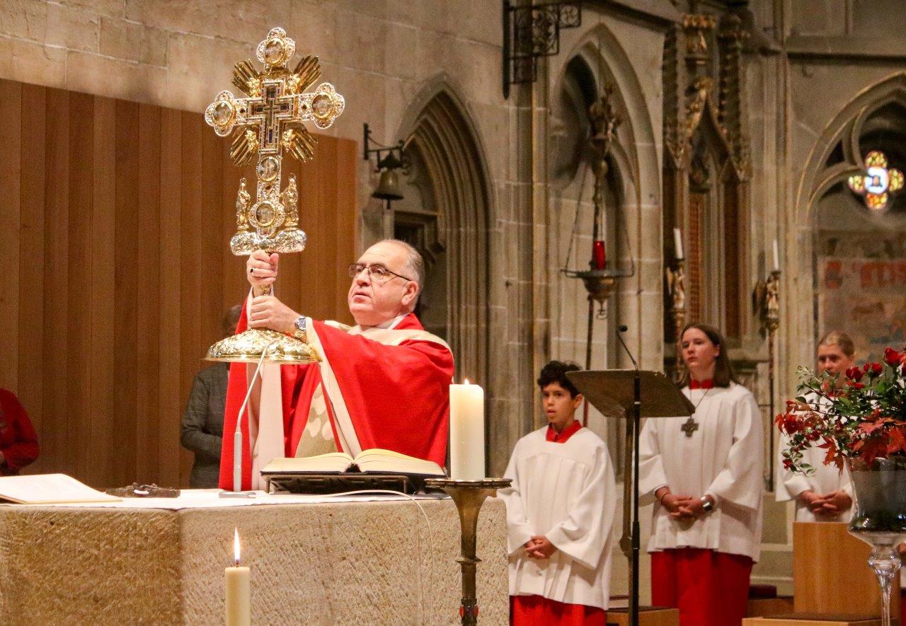 Mit einem feierlichen Gottesdienst hat die Heilig-Kreuz-Gemeinde das Titularfest ihrer Kirche gefeiert, das Fest Kreuzerhöhung. Es geht zurück auf die feierliche Weihe der Jerusalemer „Grabeskirche“ im Jahr 335.