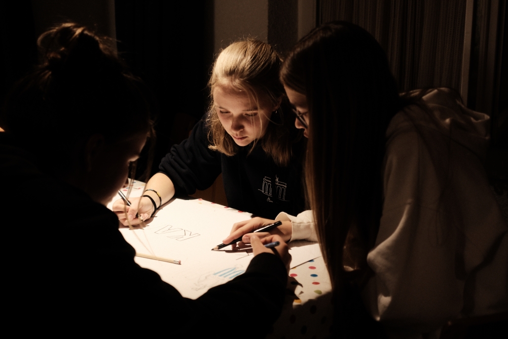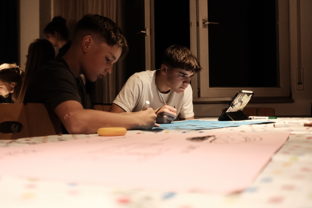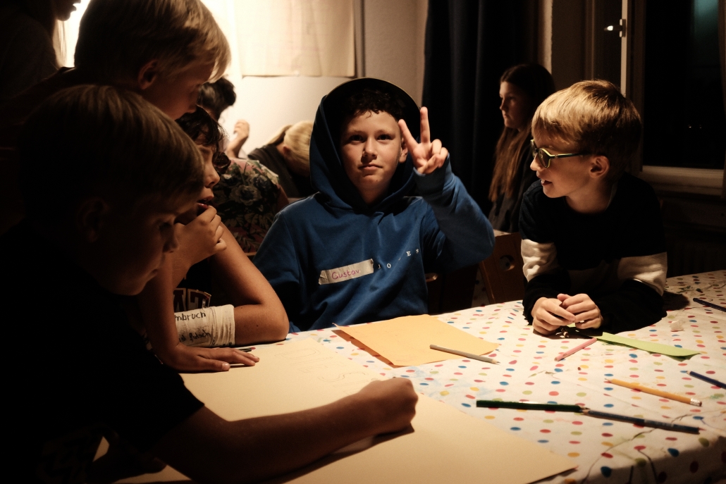 Der erste Tag unserer Reise durchs römische Reich begann durch den freundlichen Empfang der DorfbewohnerInnen eines gallischen Dorfes, dass sich durch die Römer nicht unterkriegen lässt. Nach kurzem Reisesegen und dem Bepacken des Reisebusses ging die große Fahrt in Richtung des Freizeitheims los. Nach dem Entladen des Gepäcks und einem stärkendem Safttrunk durch die wunderbare Freizeitküche, kam es zum ersten Problem im gallischen Dorf. Ohjee – nach einem ausgelassenen Festmahl verpassten die schläfrigen BewohnerInnen den Überfall der Römer und das gesamte Dorf wurde verbarrikadiert. Um einen Ausweg zu finden, mussten die DorfbewohnerInnen auf 50 Umwegen das ganze Dorf erkunden. Danach konnte sich endlich von außerhalb des Dorfes ein Überblick über die Lage verschafft werden. Anschließend fanden sich die Zimmergruppen zusammen und konnten nun endlich ihre Kojen beziehen. Daraufhin machte sich das ganze Dorf auf den Weg zur Sommerrodelbahn, um dort nach dem Spaziergang, bei dem sich schonmal ein Überblick über die umliegende Landschaft verschafft werden konnte, eine spaßige Kurvenfahrt zu absolvieren. Nach der Heimkehr von diesem Abenteuer konnten wir es nicht erwarten, endlich die ersehnten Nudeln mit Tomatensoße zu genießen. Nach dem Spülen und dem Eintragen in Putzplan und Nachtwachenplan, wurden Zimmerplakate bemalt. Hier konnten die DorfbewohnerInnen ihrer kreativen Ader vollen Lauf lassen, um ihr Zimmer möglichst gut zu repräsentieren. Nachdem die kreative Energie aufgebraucht war trafen sich alle im Gute-Nacht-Zimmer, um den letzten Sketch des Tages zu sehen und um nach der Gutenachtgeschichte endlich ins Bett zu fallen oder die Nachtwache anzutreten.