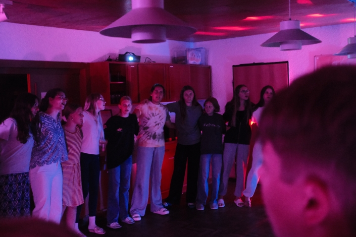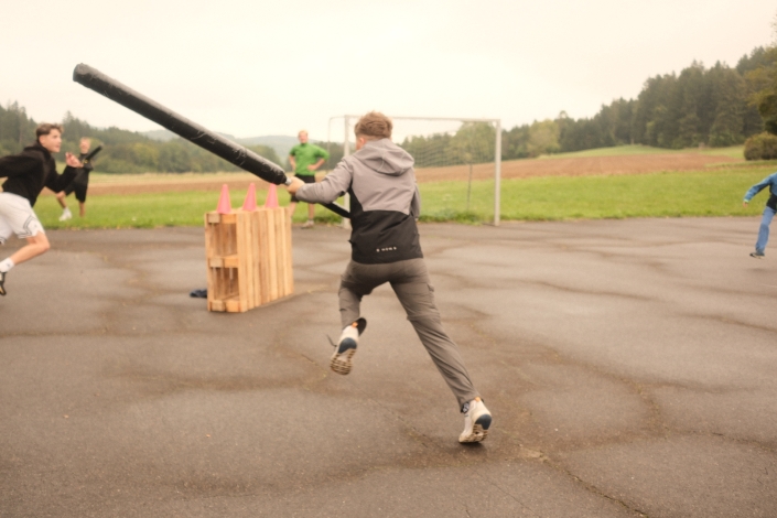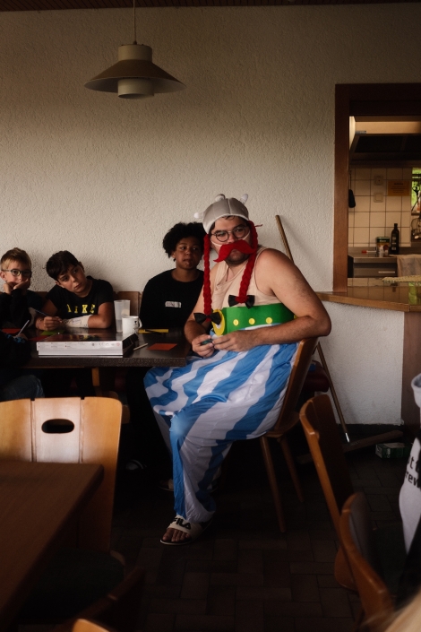 Hochmotiviert und voller Tatendrang startete das gallische Dort in den neuen Tag. Auf den Impuls folgte ein leckeres Frühstück, um uns für den Tag zu stärken, den auch heute forderte Caesar uns wieder heraus: „Ihr könnt doch nicht feiern, eure Kultur ist banal und barbarisch“. Das konnten wir natürlich nicht auf uns sitzen lassen, um unsere Kreativität und Spielwitz zu beweisen überlegten wir uns den Vormittag über vier verschiedenste Spiele. Frisch gestärkt von leckeren Wraps mit allerlei Füllung, probierten wir am Nachmittag die vormittags überlegten Spiele aus. Neben witzigen Muhhhhh Momenten und verschiedensten Quizzes, spielten wir auch Hinkelsteinball, Dynamit und Todeskreis, und Bellum Galicum. Wie echte Gallier*innen ließen wir uns auch nicht von ein wenig Regen abhalten – und hatten uns dann auch eine Dusche und ein zauberhaftes Abendessen verdient. Ein großes Dankschön an den Käse Caduff, für die leckeren Käsespätzle, die unsere Küche fantastisch zubereitet hat. Um Caesar dann endgültig zu beweisen, dass Gallier*innen auch richtig feiern können, ließen wir den Tag mit einem legendären „Mini-Rave“ ausklingen. Hier wurde viel gelacht, getanzt, gesungen und leckere Cocktails geschlürft. Mit diesem Hammer-Abend konnten wir letztendlich auch Caesar von unseren Festen überzeugen, sodass er sich sogar entschuldigte. Müde und ausgepowert gingen wir ins Bett – voller Vorfreude auf dem nächsten Tag.