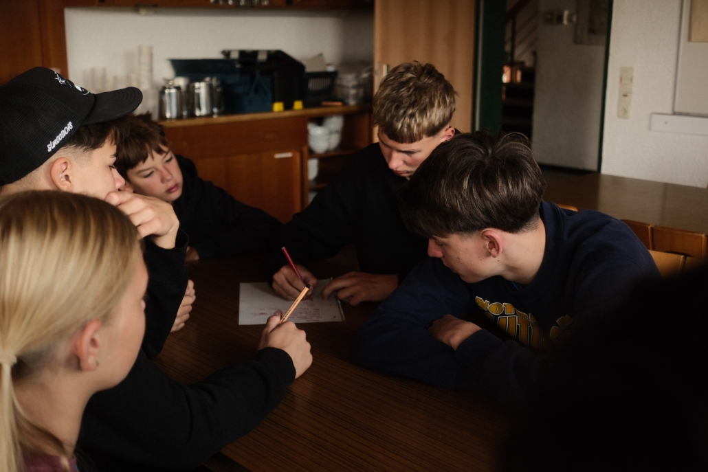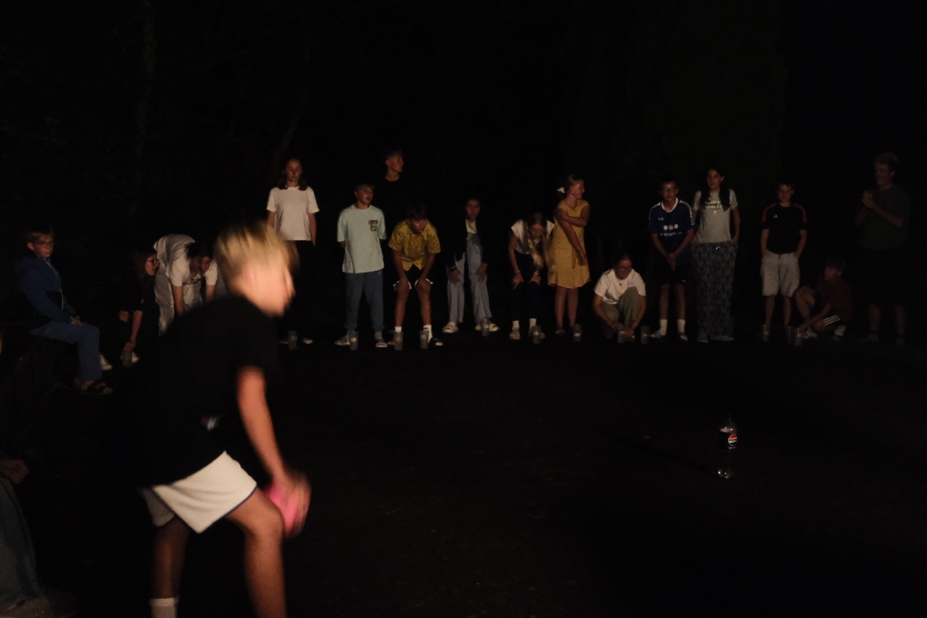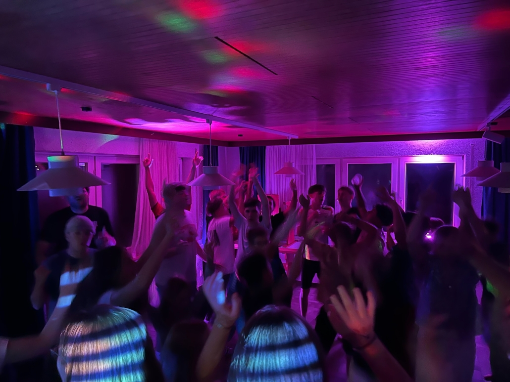 Hochmotiviert und voller Tatendrang startete das gallische Dort in den neuen Tag. Auf den Impuls folgte ein leckeres Frühstück, um uns für den Tag zu stärken, den auch heute forderte Caesar uns wieder heraus: „Ihr könnt doch nicht feiern, eure Kultur ist banal und barbarisch“. Das konnten wir natürlich nicht auf uns sitzen lassen, um unsere Kreativität und Spielwitz zu beweisen überlegten wir uns den Vormittag über vier verschiedenste Spiele. Frisch gestärkt von leckeren Wraps mit allerlei Füllung, probierten wir am Nachmittag die vormittags überlegten Spiele aus. Neben witzigen Muhhhhh Momenten und verschiedensten Quizzes, spielten wir auch Hinkelsteinball, Dynamit und Todeskreis, und Bellum Galicum. Wie echte Gallier*innen ließen wir uns auch nicht von ein wenig Regen abhalten – und hatten uns dann auch eine Dusche und ein zauberhaftes Abendessen verdient. Ein großes Dankschön an den Käse Caduff, für die leckeren Käsespätzle, die unsere Küche fantastisch zubereitet hat. Um Caesar dann endgültig zu beweisen, dass Gallier*innen auch richtig feiern können, ließen wir den Tag mit einem legendären „Mini-Rave“ ausklingen. Hier wurde viel gelacht, getanzt, gesungen und leckere Cocktails geschlürft. Mit diesem Hammer-Abend konnten wir letztendlich auch Caesar von unseren Festen überzeugen, sodass er sich sogar entschuldigte. Müde und ausgepowert gingen wir ins Bett – voller Vorfreude auf dem nächsten Tag.