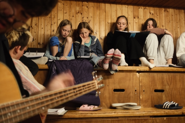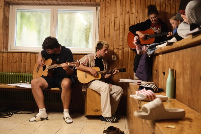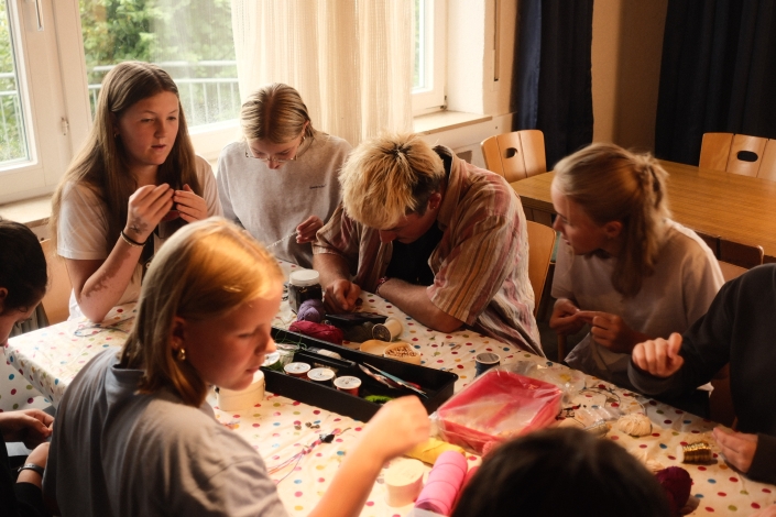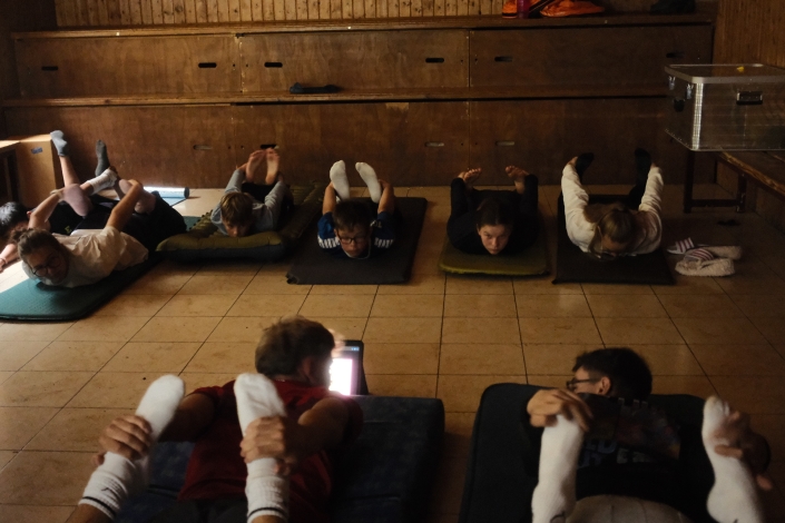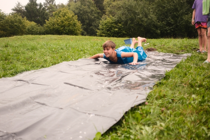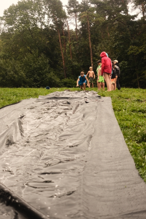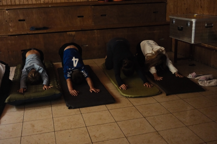 Als nach einem besonders sportlichen Morgenimpuls alle Müdigkeit abgeschüttelt worden war, war unser gallisches Dorf bereit für den heutigen Tag. Das folgende Frühstück war nahrhaft. Vormittags teilten sich die Kinder in Gruppen, die verschiedene Workshops besuchten. Es gab eine Wasserrutsche, die auf Grund des Wetters nicht künstlich bewässert werden musste, einen Kochkurs, der durch einen leckeren Applecrumble allen einen tollen Nachtisch bescherte, ein Entspannungsyoga, das zum üblichen Trubel auf der Freizeit einen schönen Kontrast bot, ein sportliches Workout angeleitet von den großen Jungs, gemeinsames Singen mit den mit Gitarre ausgerüsteten Leitern, Fahne bemalen, dass unser Minifreizeitbanner allen Kustkritikern standhält und einen Workshop, der mit Hausverschönerungsmaßnahmen, wie dem Reinigen des Eingangsbereichs, dem Allgemeinwohl sehr dienlich war und ist. Ein angesetzter Bibelworkshop kam wegen ausbleibender Anmeldungen leider nicht zu Stande. Nachmittags fand eine Wanderung statt, die jedes Zimmer mit den Zimmerpaten individuell gestalten konnte. So wurden nette Momente bei Burgruinen, in umliegenden Dörfern, im nächstgelegenen Supermarkt, an Pferdegehegen und bei sonstigen Tieren, auf dem Traktor oder einfach unterwegs in der Natur gesammelt werden. Das Abendessen, das aus selbstgemachten Burgen bestand, das bestätigt durch alle Teilnehmer, sehr lecker war, war ein echtes Highlight. Der Tag klang gemütlich bei einem Asterixfilm aus.