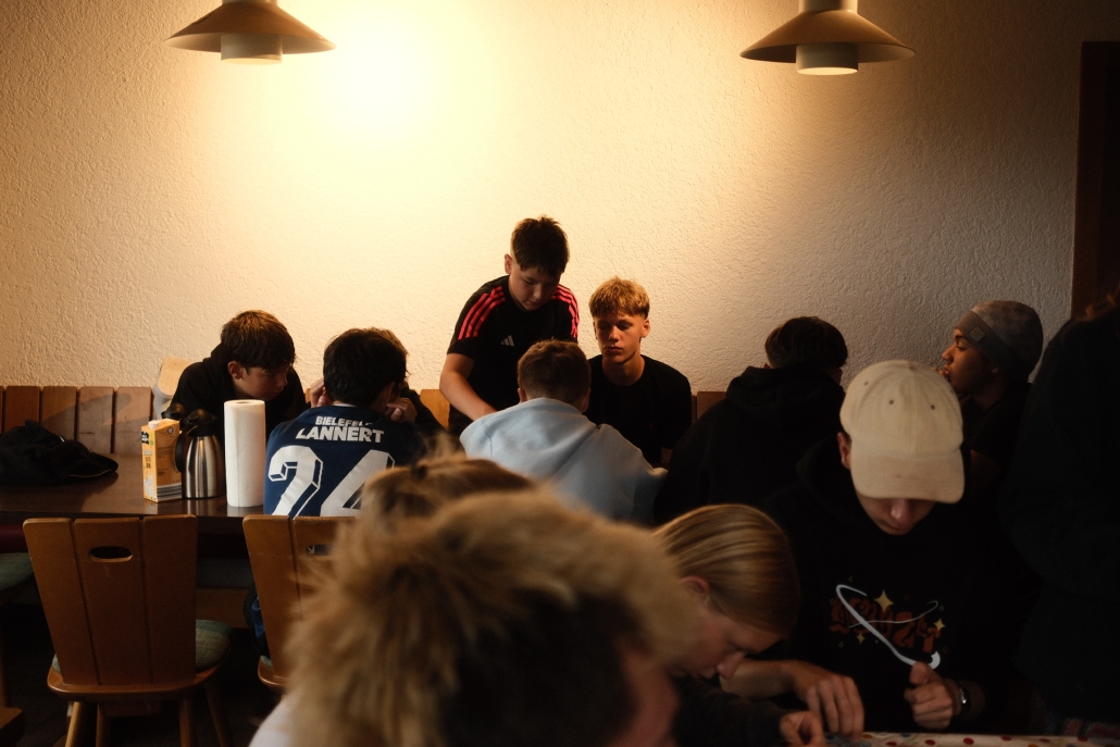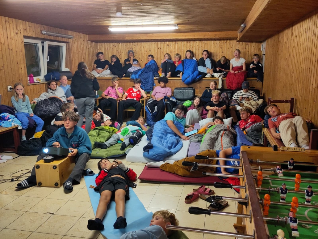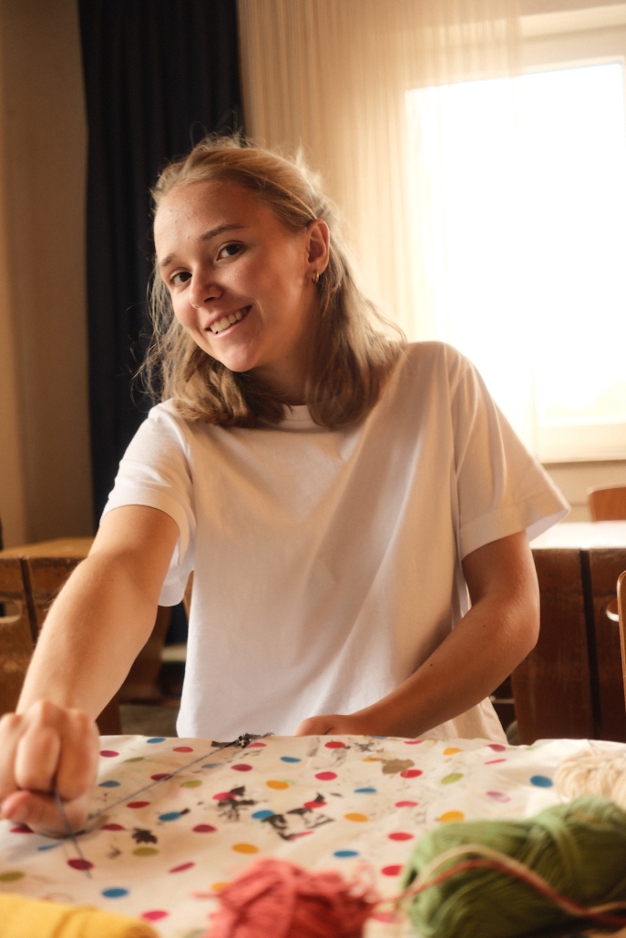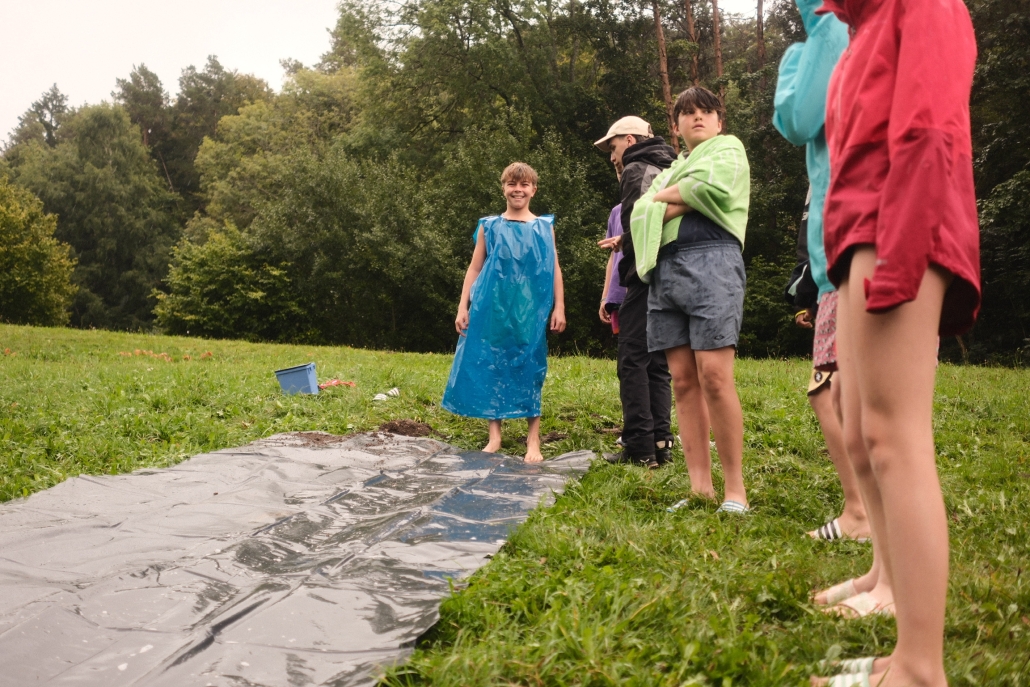 Als nach einem besonders sportlichen Morgenimpuls alle Müdigkeit abgeschüttelt worden war, war unser gallisches Dorf bereit für den heutigen Tag. Das folgende Frühstück war nahrhaft. Vormittags teilten sich die Kinder in Gruppen, die verschiedene Workshops besuchten. Es gab eine Wasserrutsche, die auf Grund des Wetters nicht künstlich bewässert werden musste, einen Kochkurs, der durch einen leckeren Applecrumble allen einen tollen Nachtisch bescherte, ein Entspannungsyoga, das zum üblichen Trubel auf der Freizeit einen schönen Kontrast bot, ein sportliches Workout angeleitet von den großen Jungs, gemeinsames Singen mit den mit Gitarre ausgerüsteten Leitern, Fahne bemalen, dass unser Minifreizeitbanner allen Kustkritikern standhält und einen Workshop, der mit Hausverschönerungsmaßnahmen, wie dem Reinigen des Eingangsbereichs, dem Allgemeinwohl sehr dienlich war und ist. Ein angesetzter Bibelworkshop kam wegen ausbleibender Anmeldungen leider nicht zu Stande. Nachmittags fand eine Wanderung statt, die jedes Zimmer mit den Zimmerpaten individuell gestalten konnte. So wurden nette Momente bei Burgruinen, in umliegenden Dörfern, im nächstgelegenen Supermarkt, an Pferdegehegen und bei sonstigen Tieren, auf dem Traktor oder einfach unterwegs in der Natur gesammelt werden. Das Abendessen, das aus selbstgemachten Burgen bestand, das bestätigt durch alle Teilnehmer, sehr lecker war, war ein echtes Highlight. Der Tag klang gemütlich bei einem Asterixfilm aus.
