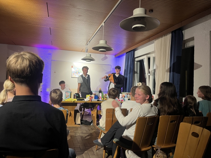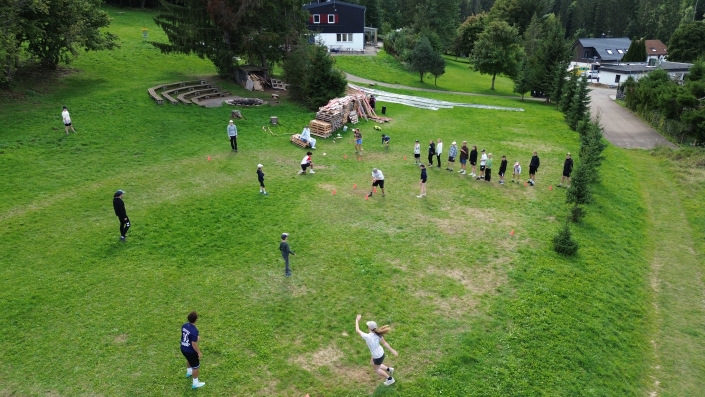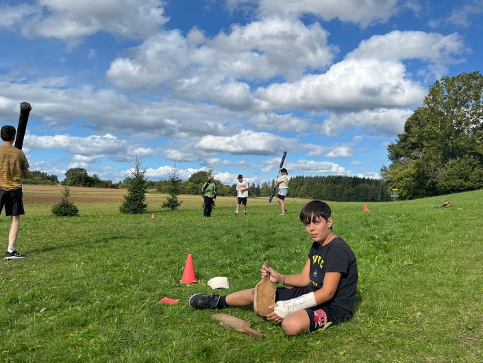 Der letzte volle Tag begann mit einem leckeren Frühstück, das fast so gut war, wie das der Küche die Tage zuvor. Nachdem die Bäuche mit Müsli und Broten gefüllt waren, das Lagerlied noch einmal angestimmt wurde und Elias M als Sonntagsleiter gewählt wurde, ging es schon ab in den Wald. Dort wurde das bereits legendäre Geländespiel „Lignum der Macht“ gespielt, wobei die Kinder allerlei Challenges lösten, Gegner überwältigten und versuchten das Lignum einzunehmen. Gestärkt nach leckerem Resteessen ging es schon wieder weiter mit allerlei Sportspielen. Da in Griechenland gerade die Olympischen Spiele stattfanden und deswegen Griechenland großräumig gesperrt war, blieb uns Galliern als einzige Möglichkeit um das Land zu durchqueren, nur die Teilnahme an den Olympischen Spielen. Somit powerten sich die Kinder bei mehreren Runden Theque, Völkerball, Volley- und Basketball aus. Da heute schon der letzte volle Tag war, durfte natürlich ein festliches Essen mit Lasagne und leckerem Dessert nicht fehlen. Und als krönender Abschluss hatten die Kinder die Chance ihre hart erarbeiteten Grunzpunkte bei einer großen Versteigerung einzusetzen und das ein oder andere schöne Souvenir, Andenken und nettes Mitbringsel zu ergattern. Geschafft aber glücklich fielen die Kinder ein letztes mal in ihren wohlverdienten Schlaf.