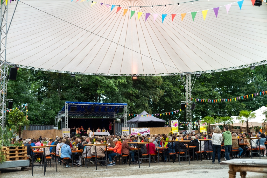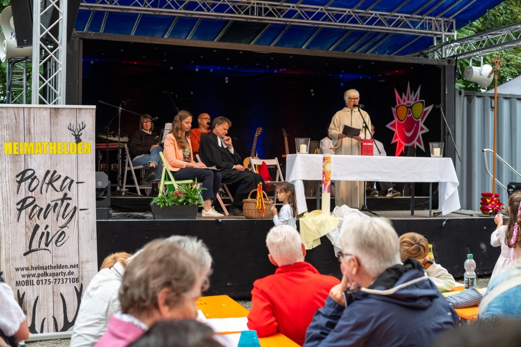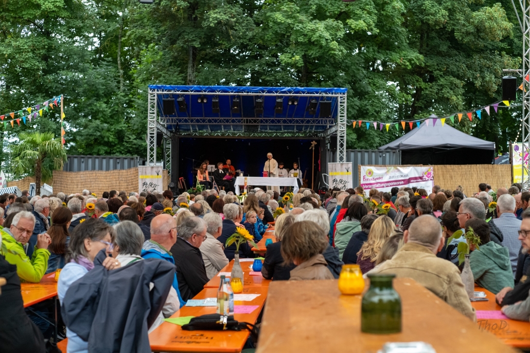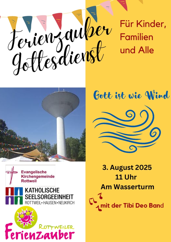 Viele Mitfeiernde sind zum fröhlichen Gottesdienst beim Ferienzauber gekommen. Der ökumenische Familiengottesdienst beim Wasserturm ist längst Tradition. Ein großer Dank gebührt dem Ferienzauber Rottweil, der unserem besonderen Gottesdienst Raum und Rahmen gibt.